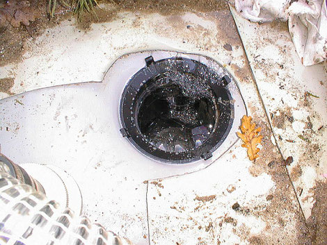 Hier sehen Sie eine Leckstelle in einem mit Kies